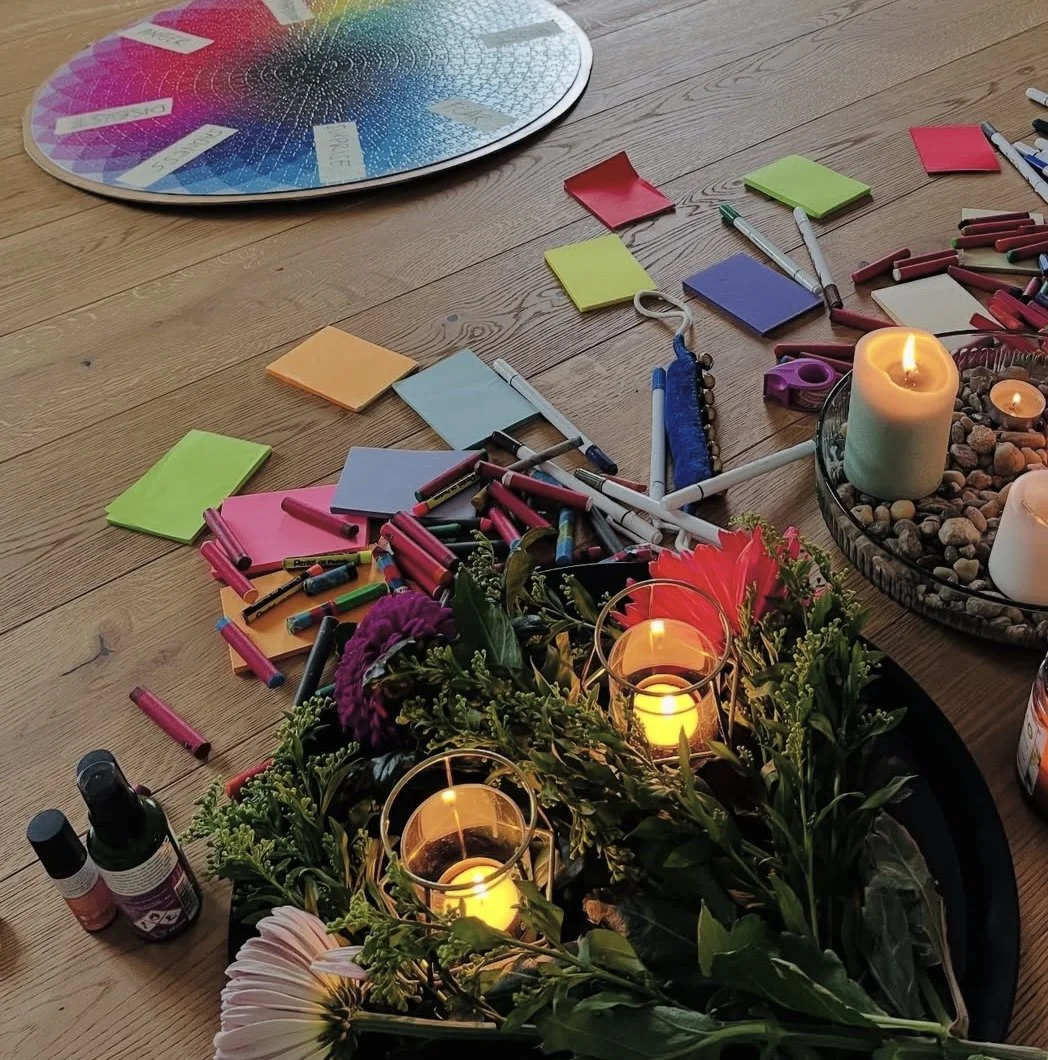 Color in (E)motion is a 2-hour immersive experience that guides participants through a somatic and creative process:
